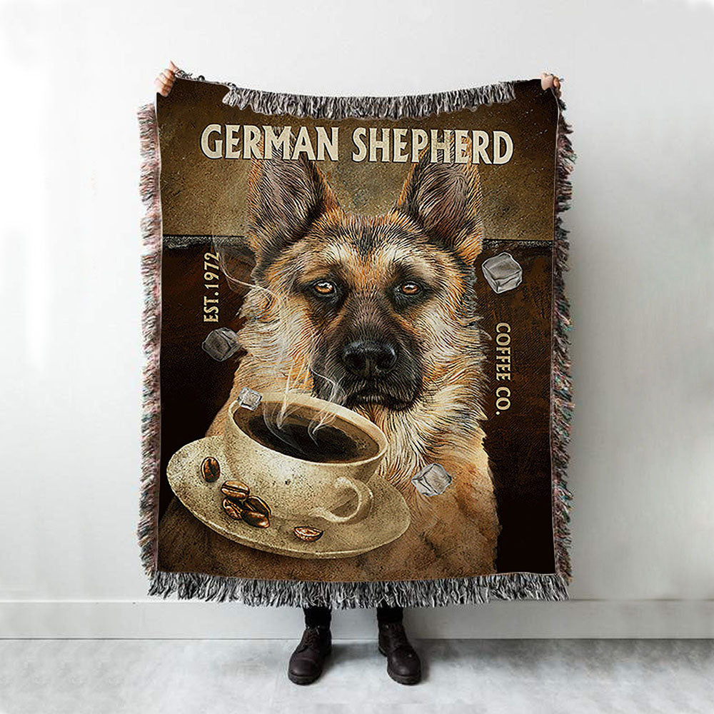 Personalized Coffee German Shepherd Woven Blanket - Christian Throw Blanket - Religious Home Decor