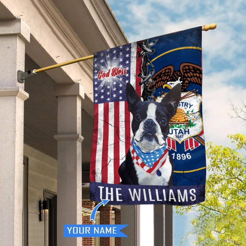 Personalized Dog Flags, Utah Boston Terrier God Bless House Flag, Garden Flags Dogs, Dog House Flags
