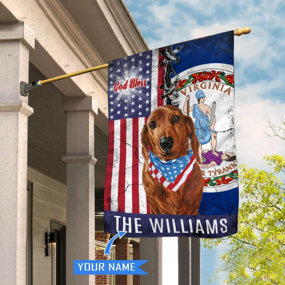 Personalized Dog Flags, Virginia Dachshund God Bless House Flag, Garden Flags Dogs, Dog House Flags