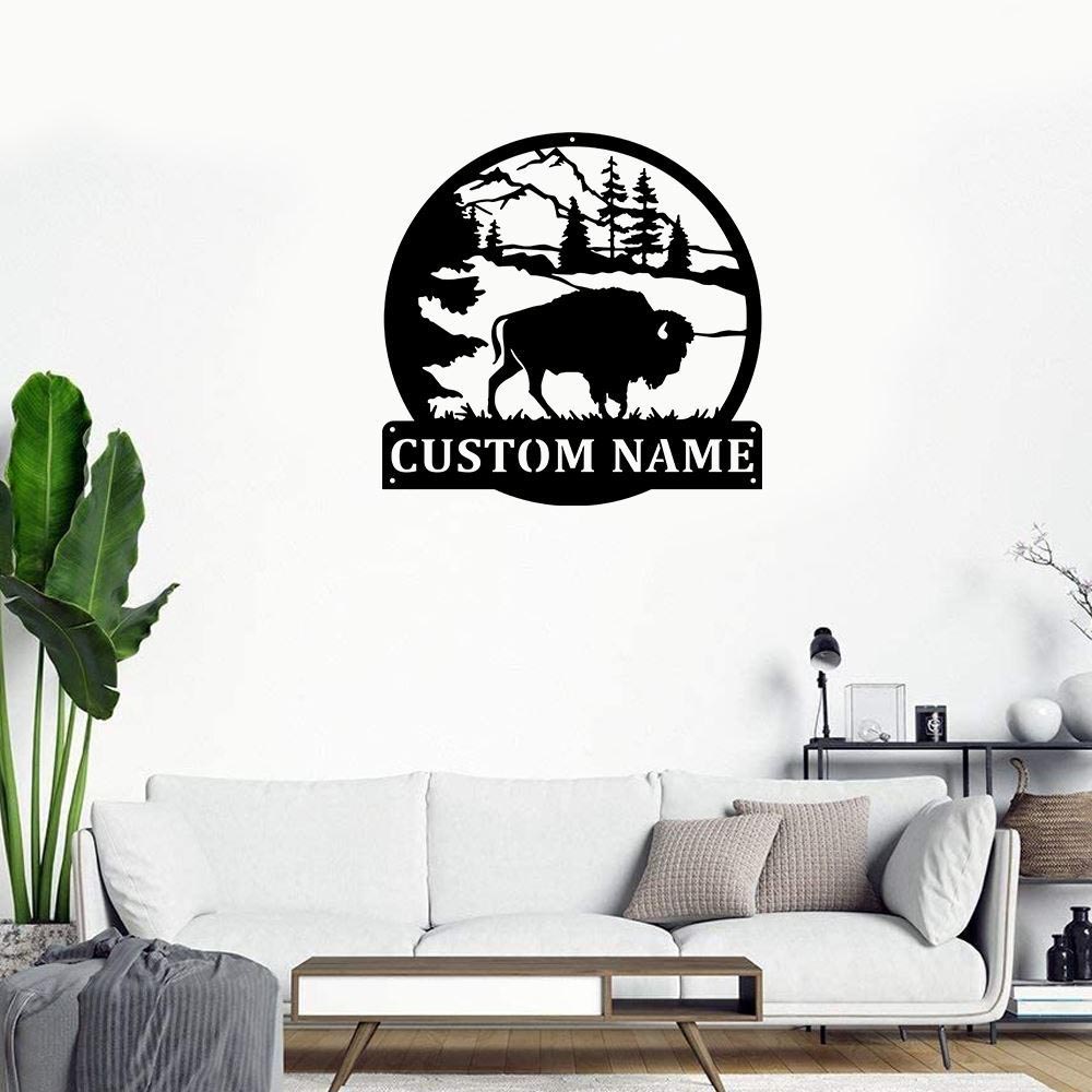 Personalized Metal Monogram Sign, American Bison Metal Wall Art, Bison Name Sign, American Bison Home Decor