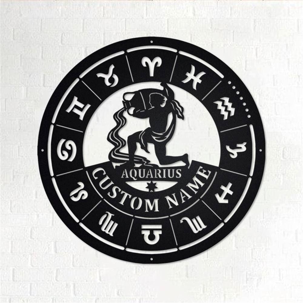 Personalized Metal Monogram Sign, Aquarius Zodiac Metal Wall Art, Aquarius Name Sign, Decoration For Room
