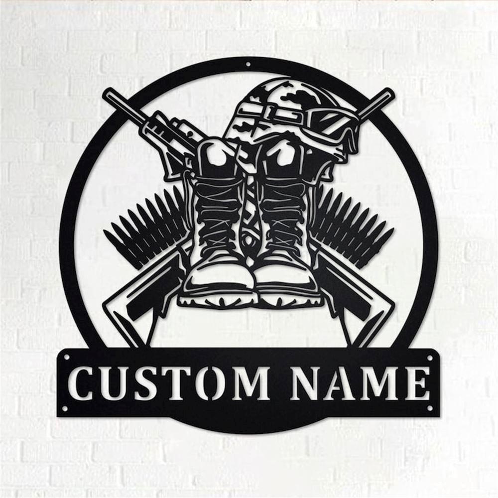 Personalized Metal Monogram Sign, Boots Guns Veteran Metal Wall Art, Veteran Name Sign, Veteran Metal Home Decor