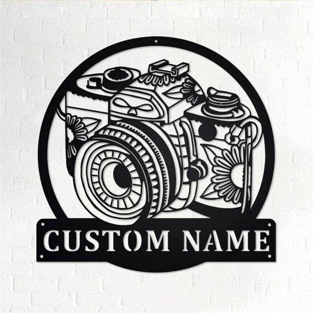 Personalized Metal Monogram Sign, Camera Zentangle Metal Wall Art, Camera Name Sign, Camera Metal Home Decor