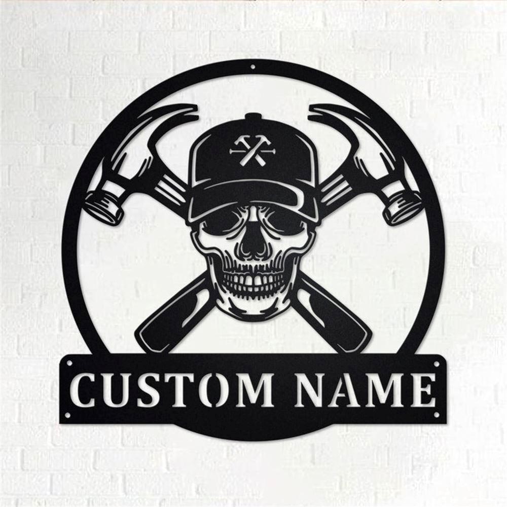 Personalized Metal Monogram Sign, Carpenter Skull Metal Wall Art, Carpenter Name Sign, Carpenter Metal Home Decor