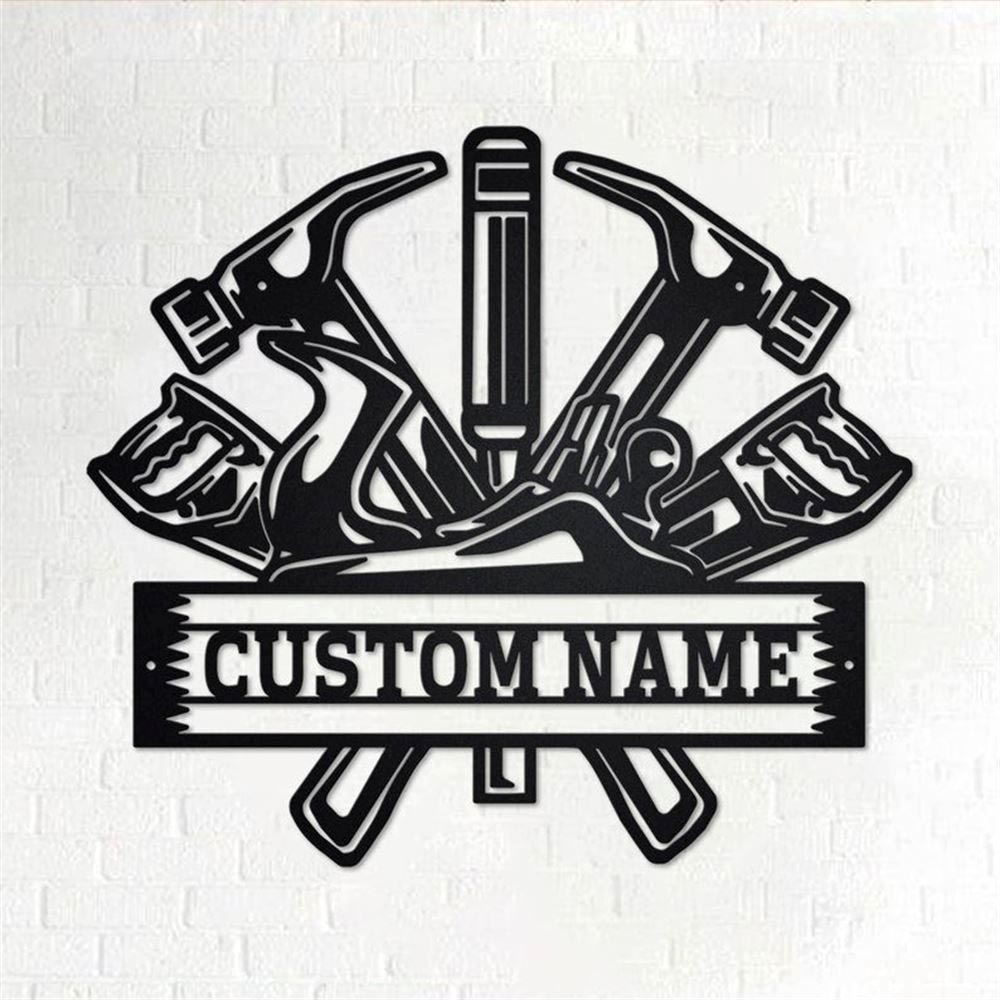 Personalized Metal Monogram Sign, Carpenter Tools Metal Wall Art, Carpenter Name Sign, Carpenter Home Decor