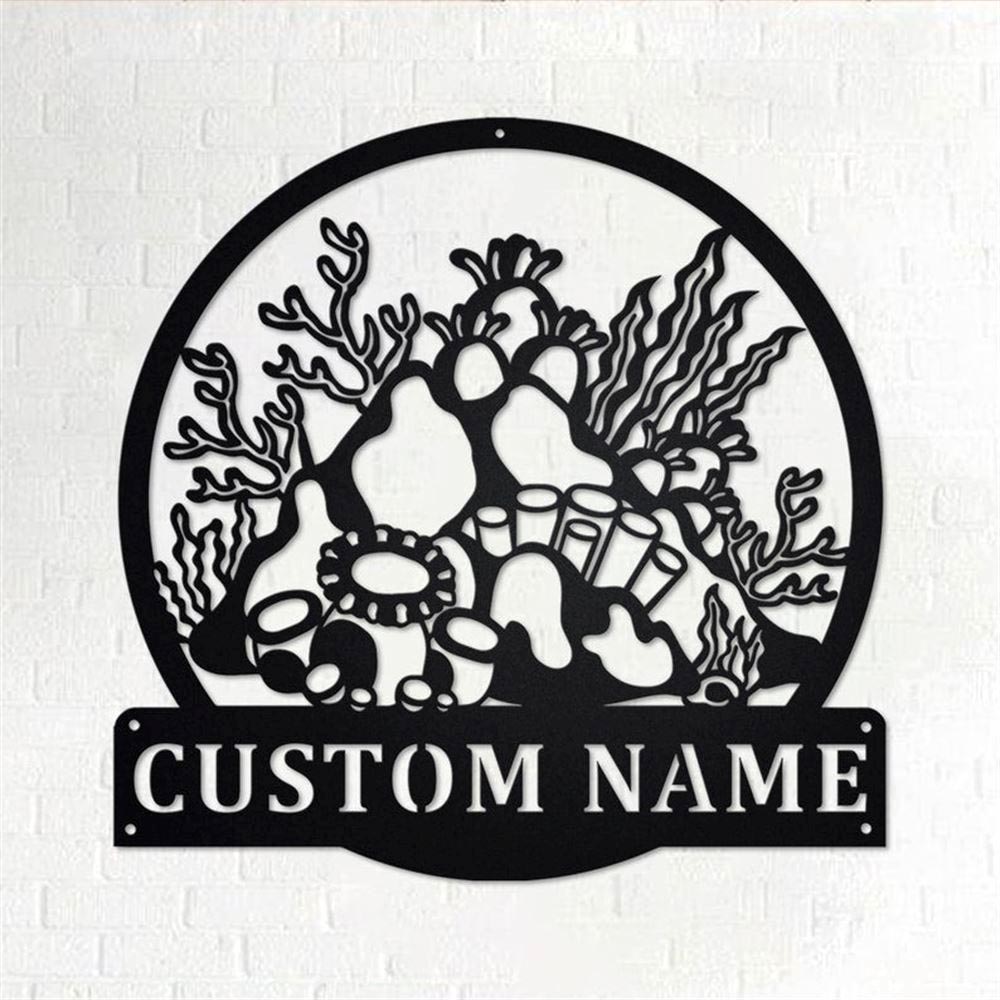 Personalized Metal Monogram Sign, Coral Reef Metal Wall Art, Coral Reef Name Sign, Coral Reef Home Decor
