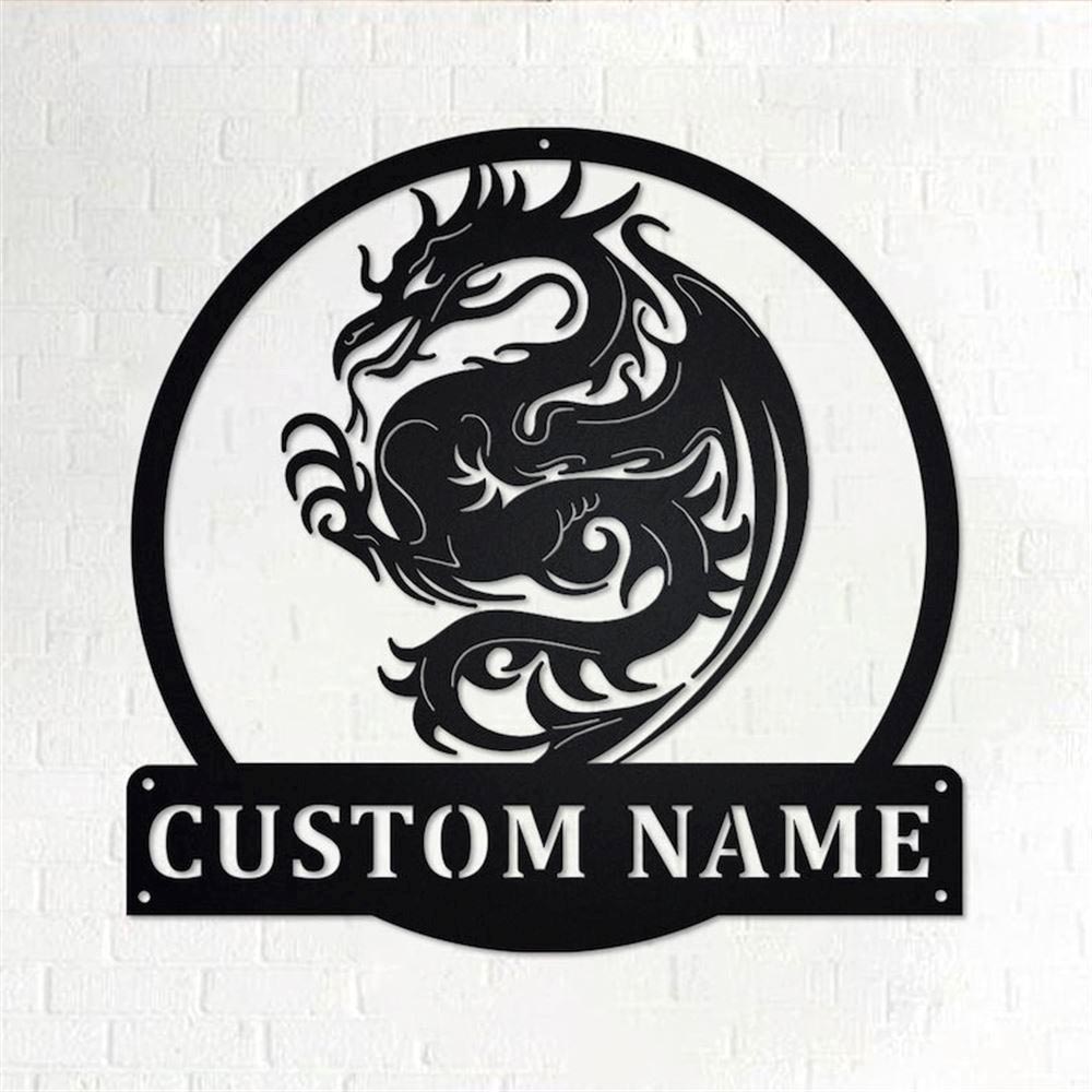 Personalized Metal Monogram Sign, Dragon Metal Wall Art, Dragon Name Sign, Dragon Home Decor