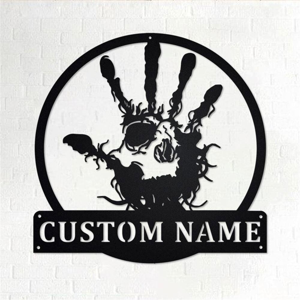 Personalized Metal Monogram Sign, Hand Skull Tribal Eye Fingers Metal Wall Art, Hand Skull Name Sign, Hand Skull Gymer