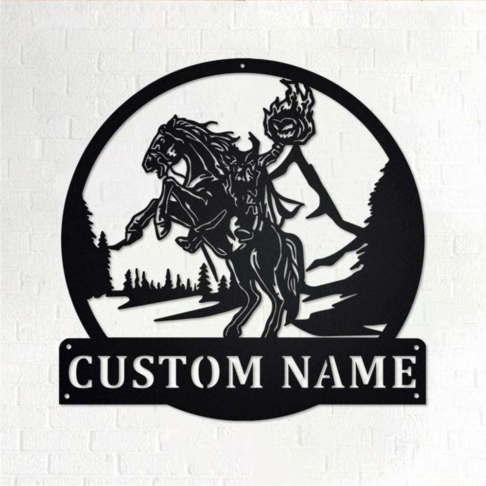 Personalized Metal Monogram Sign, Headless Horseman Metal Wall Art, Horseman Name Sign, Horseman Home Decor