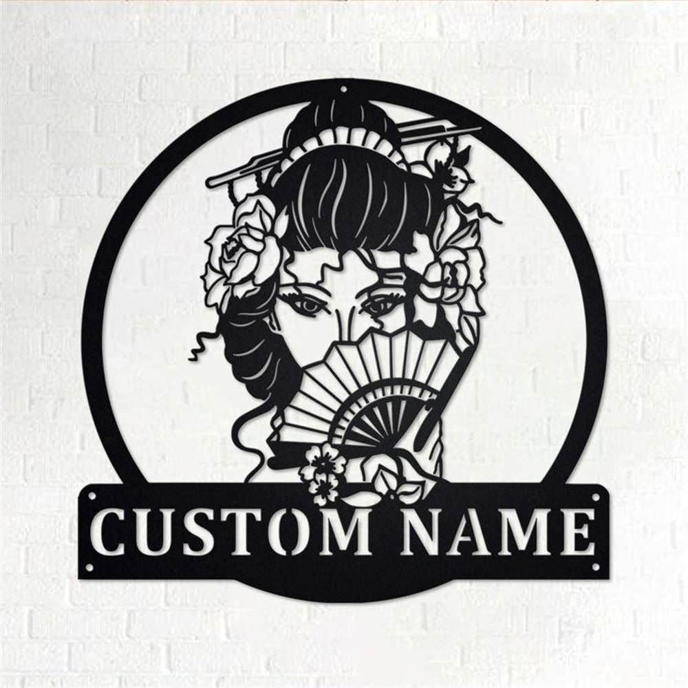 Personalized Metal Monogram Sign, Japanese Geisha Metal Wall Art, Geisha Name Sign, Geisha Home Decor