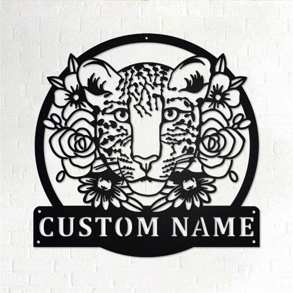Personalized Metal Monogram Sign, Leopard With Flower Metal Wall Art, Leopard Name Sign, Leopard Metal Home Decor