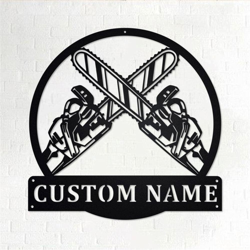 Personalized Metal Monogram Sign, Logging Chainsaw Metal Wall Art, Logger Name Sign, Logging Metal Home Decor