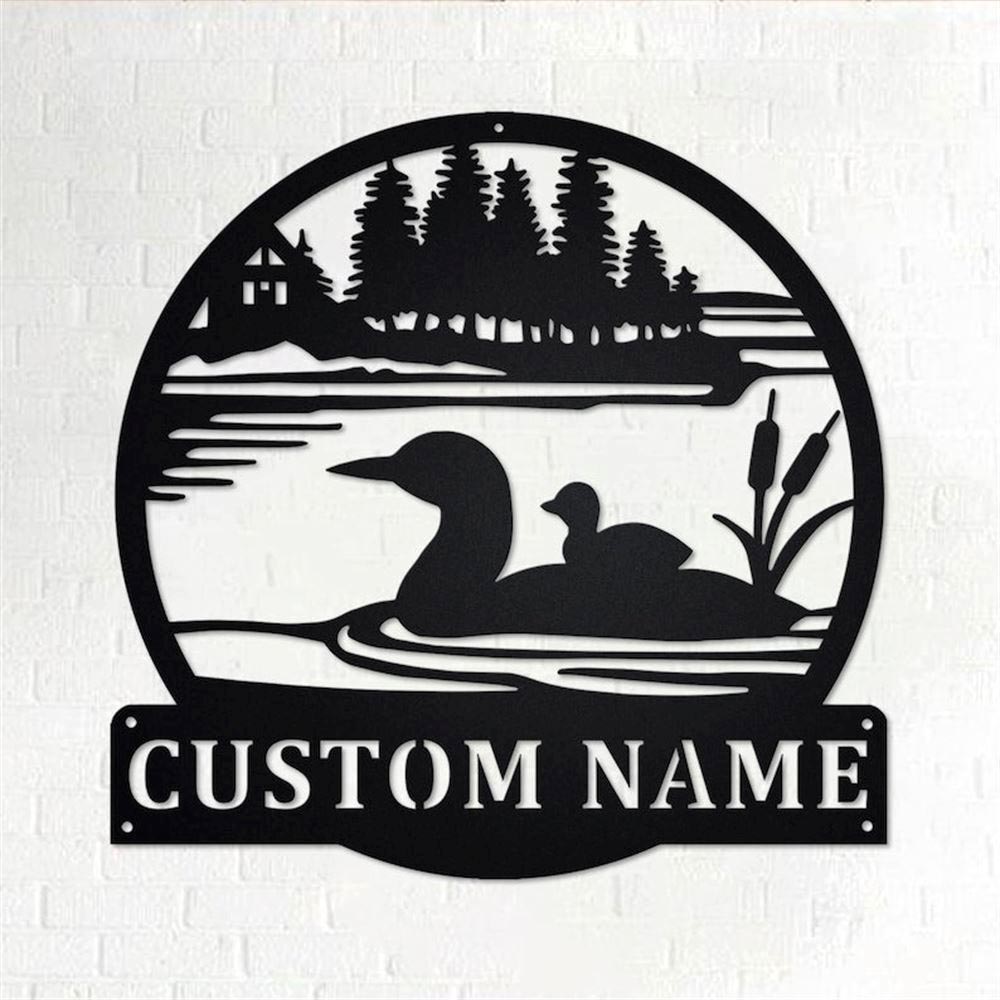 Personalized Metal Monogram Sign, Loon Duck Metal Wall Art, Loon Duck Name Sign, Loon Duck Home Decor