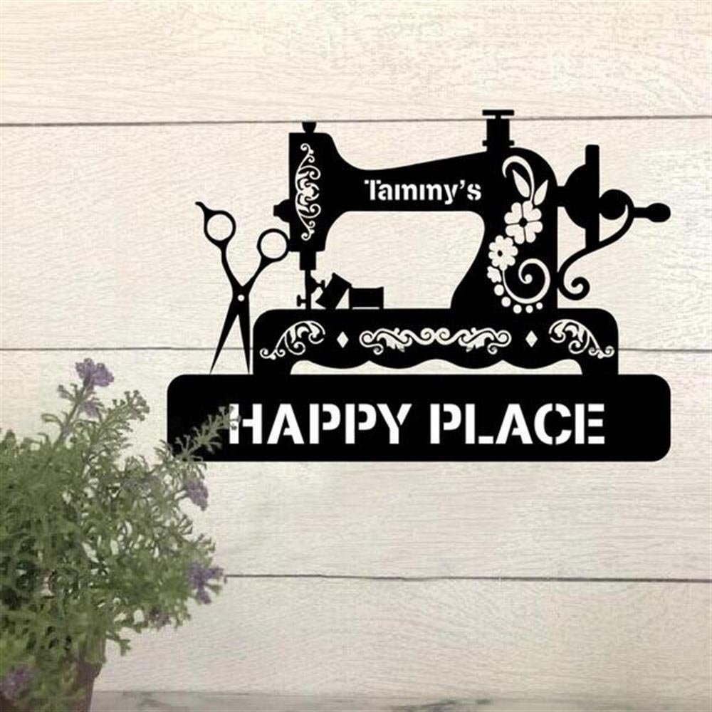 Personalized Metal Monogram Sign, Sewing Lovers She Works With Her Hands In Delight Metal Wall Art, Cut Metal Sign