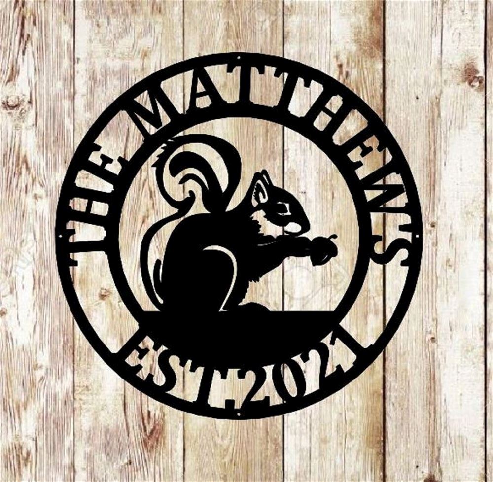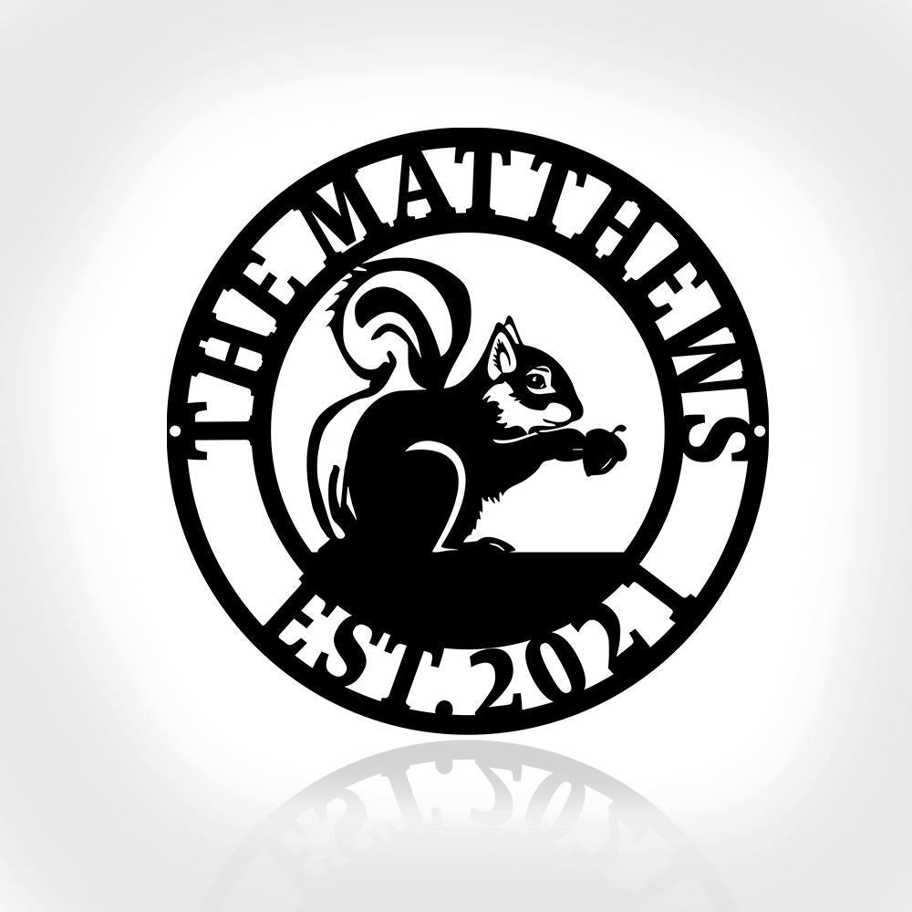 Personalized Metal Monogram Sign, Squirrel Metal Sign, Cabin Decor, Camping Sign, Campground Sign, Camper Squirrel Decor, Squirrel Sign