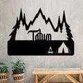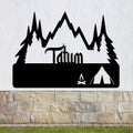 Personalized Metal Monogram Sign, Tent Camping Scene Metal Sign, Mountain Sign, Fire Metal Sign, Camping Sign, Outdoor Enthusiasts Metal Sign
