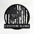 Personalized Metal Monogram Sign, US Flag Reindeer Metal Wall Art, Reindeer Name Sign, Reindeer Home Decor