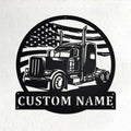 Personalized Metal Monogram Sign, US Flag Semi-Trailer Truck Metal Wall Art, Semi Truck Name Sign, Semi Truck Home Decor