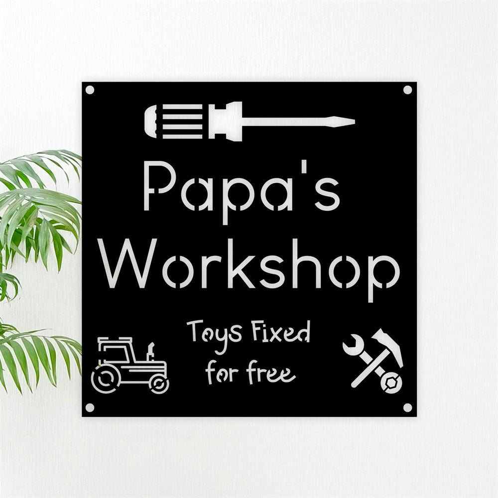 Personalized Metal Monogram Sign, Workshop Signs, For Grandpa Papa Poppa Pappy Or Daddy Toys Fixed For Free Metal Sign