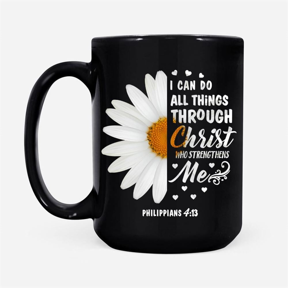 Philippians 413 I Can Do All Things Through Christ Daisy Coffee Mug, Christian Mug, Bible Mug, Faith Gift, Encouragement Gift