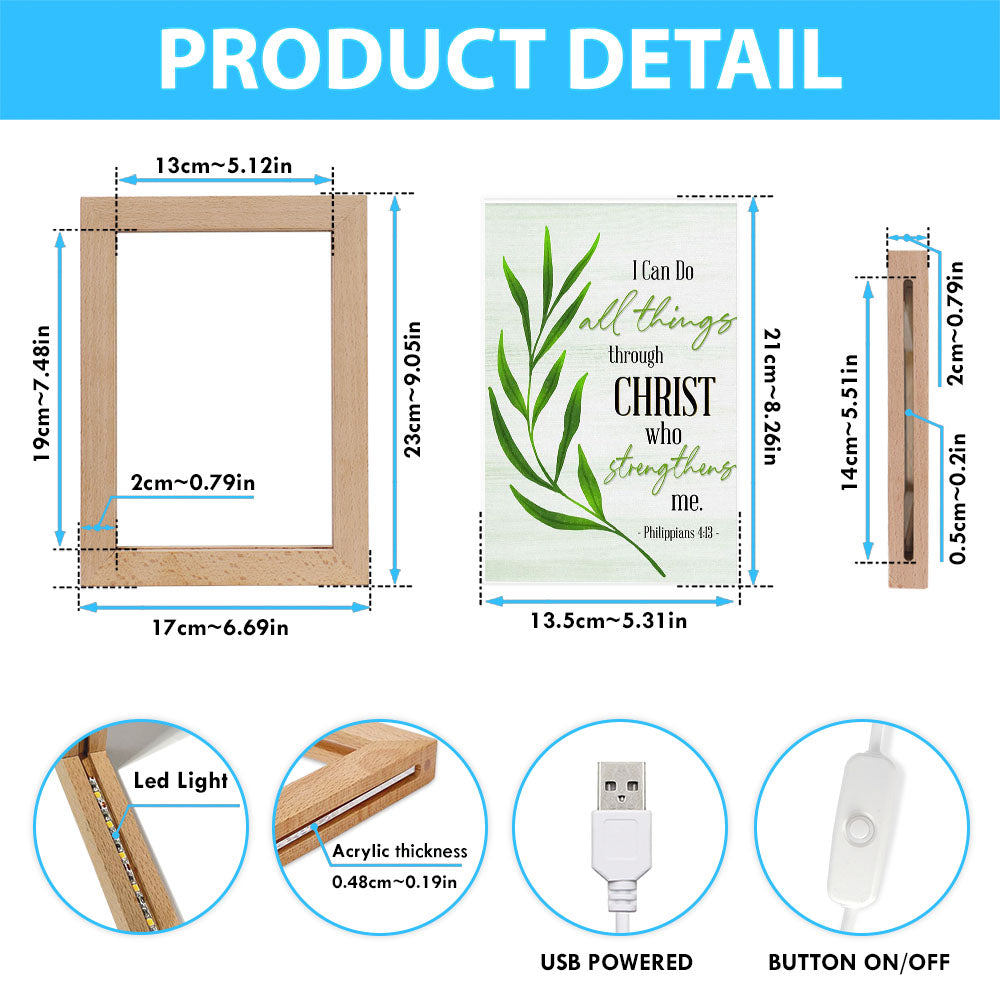 Philippians 413 I Can Do All Things Through Christ Frame Lamp Art - Inspirational Frame Lamp Art - Christian Decor