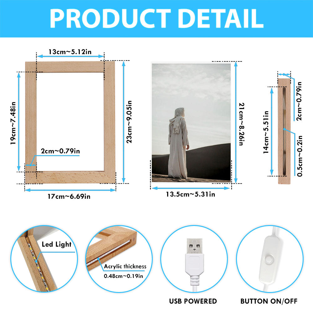 - Crafted from beech wood, our Custom Photo Frame Lamp boasts a high-quality wooden frame that infuses a room with natural elegance.