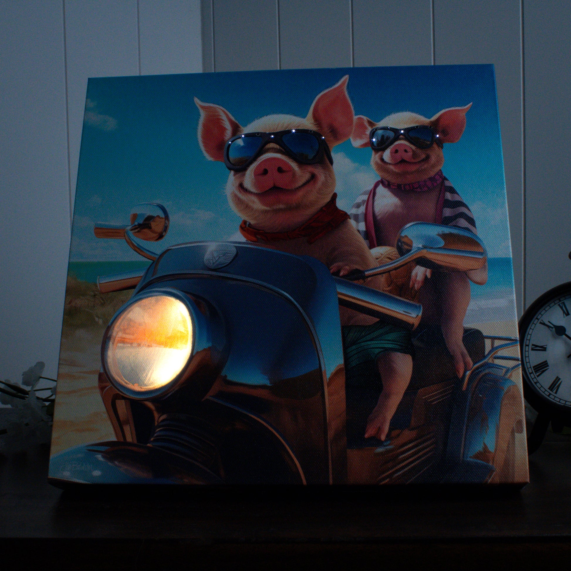 Piglets Bike 10x10 Lighted Fiber Optic Canvas