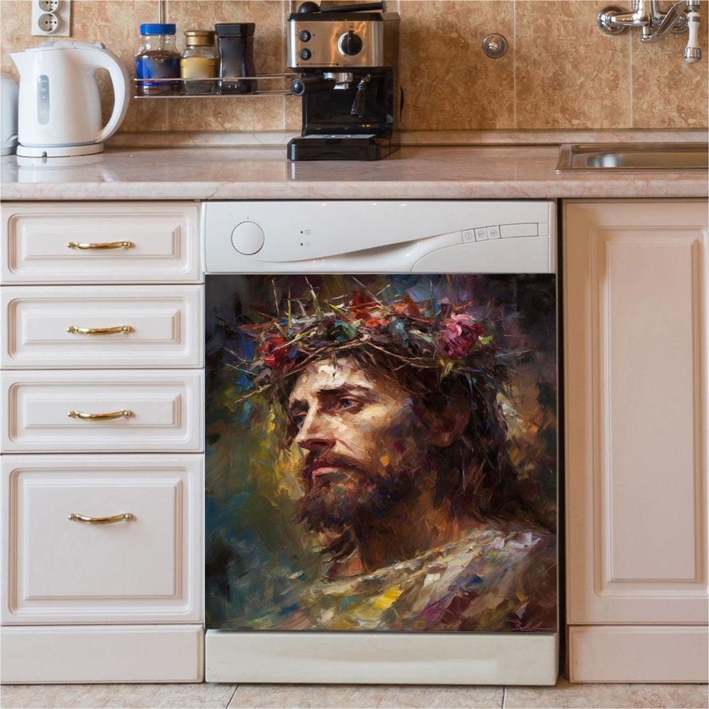 Portrait Of Jesus With The Crown Of Thorn Dishwasher Cover, Jesus Dishwasher Wrap, Christian Kitchen Decoration