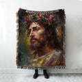 Portrait Of Jesus With The Crown Of Thorn Woven Blanket Prints - Jesus Woven Blanket Art - Christian Throw Blanket Decor