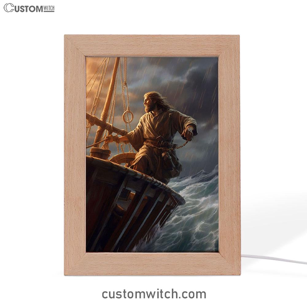 Power Jesus Christ Came To Rescue A Fishing Boat In A Storm Frame Lamp Prints - Jesus Frame Lamp Art - Christian Art Decor