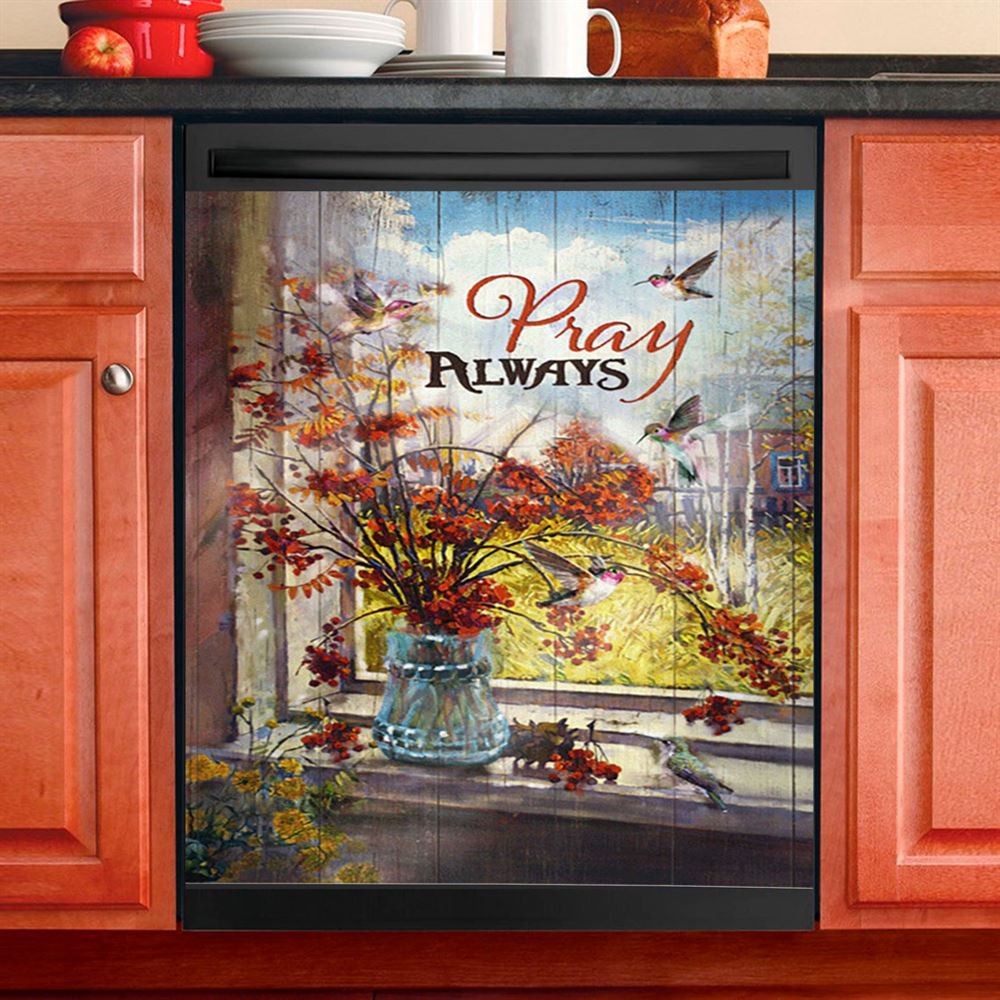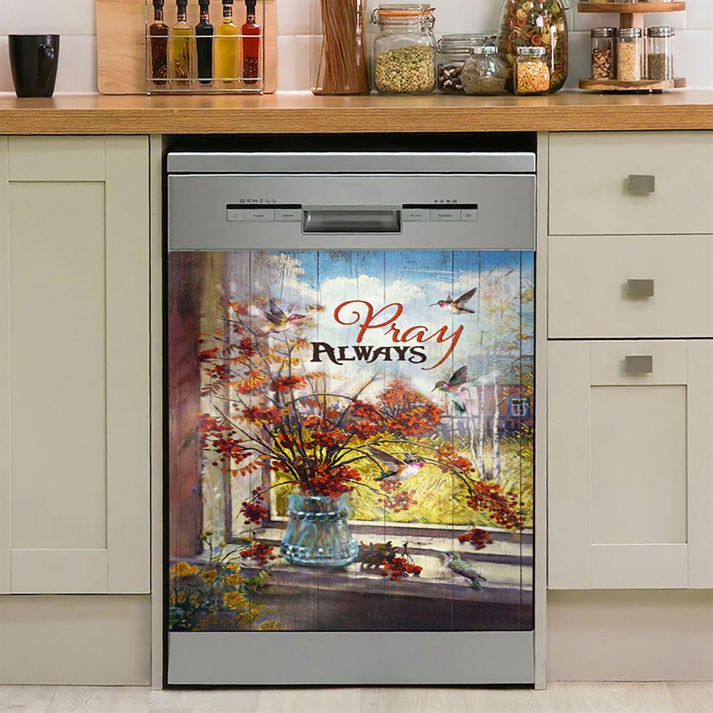 Pray Always Baby Orange Flower Autumn Hummingbird Dishwasher Cover, Christian Dishwasher Wrap, Bible Verse Kitchen Decoration