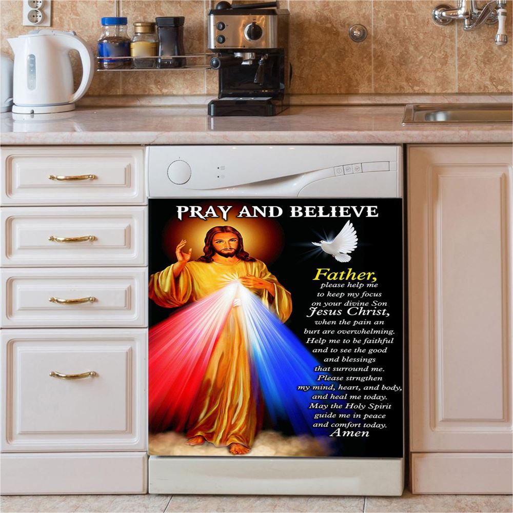 Pray And Believe Jesus Christ Dishwasher Cover, Jesus Dishwasher Wrap, Christian Kitchen Decoration