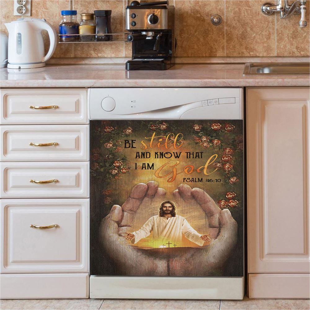 Pray For Healing Jesus'S Hand Rose Garden Be Still And Know That I Am God Dishwasher Cover, Jesus Christ Dishwasher Wrap, Christian Kitchen Decoration