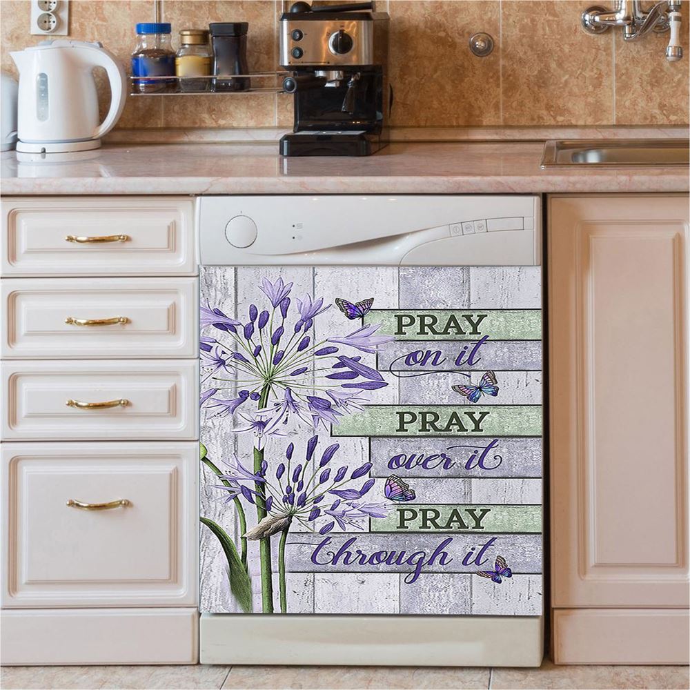 Pray On It Pray Over It Pray Through It Dishwasher Cover, Agapanthus Africanus Purple Butterfly Dishwasher Wrap, Christian Kitchen Decoration