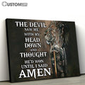 Prayer Warrior & Lion Canvas Wall Art - The Devil Saw Me With My Head Down - Bible Verse Wall Art - Christian Home Decor
