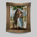 Pretty Girl Beautiful Forest Walking With Jesus Tapestry Print - Inspirational Tapestry Art - Christian Wall Art Home Decor