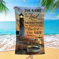 Pretty Sunset Lighthouse Drawing The Name Of The Lord Beach Towel, Christian Beach Towel, Christian Gift, Gift For Women
