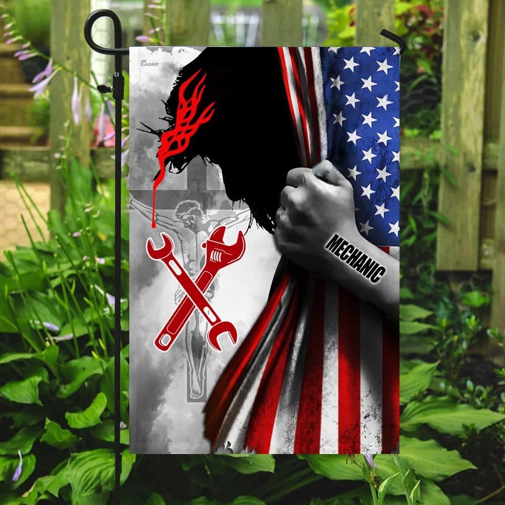 Proud Mechanic Jesus Christ House Flag, Outdoor Religious Flags, Christian Flag, Scripture Flag, Garden Banner