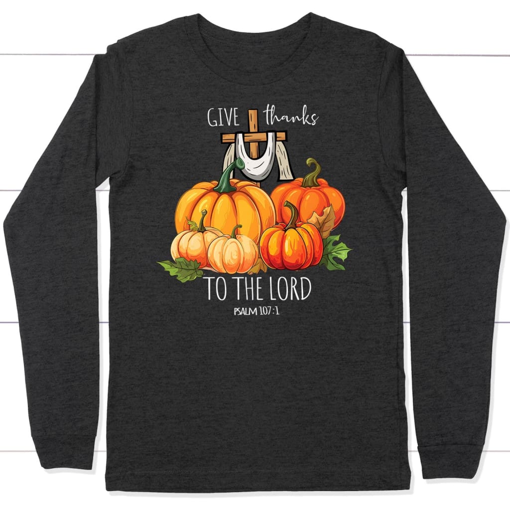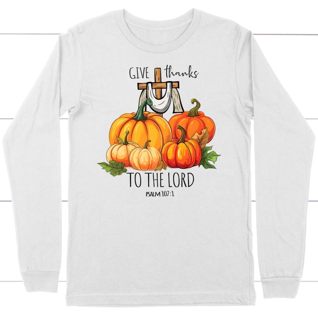 Psalm 107:1 Give Thanks To The Lord, Fall Pumpkins, Christian Long Sleeve T-shirt