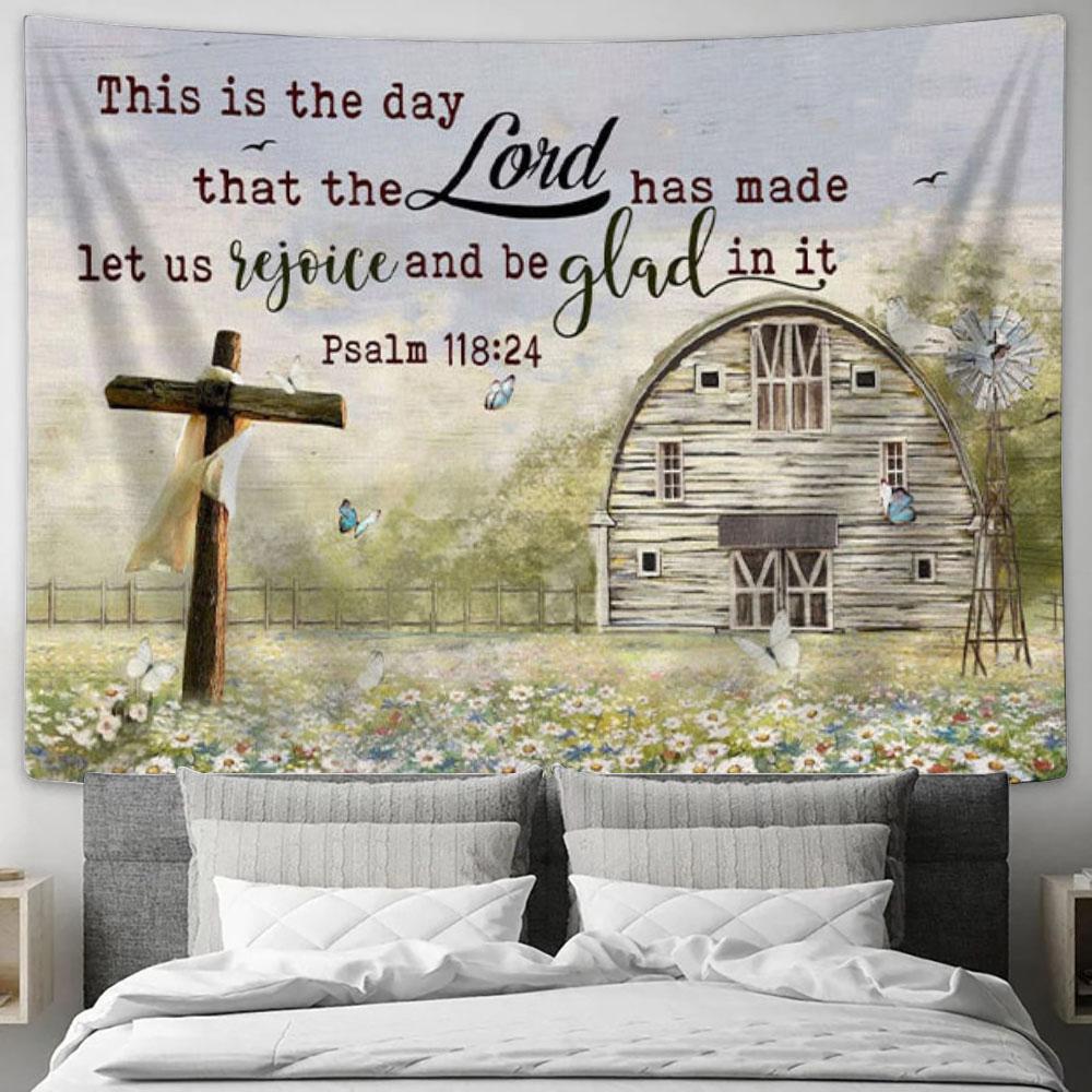 Psalm 11824 This Is The Day That The Lord Has Made Tapestry Wall Art - Farmhouse - Christian Wall Decor