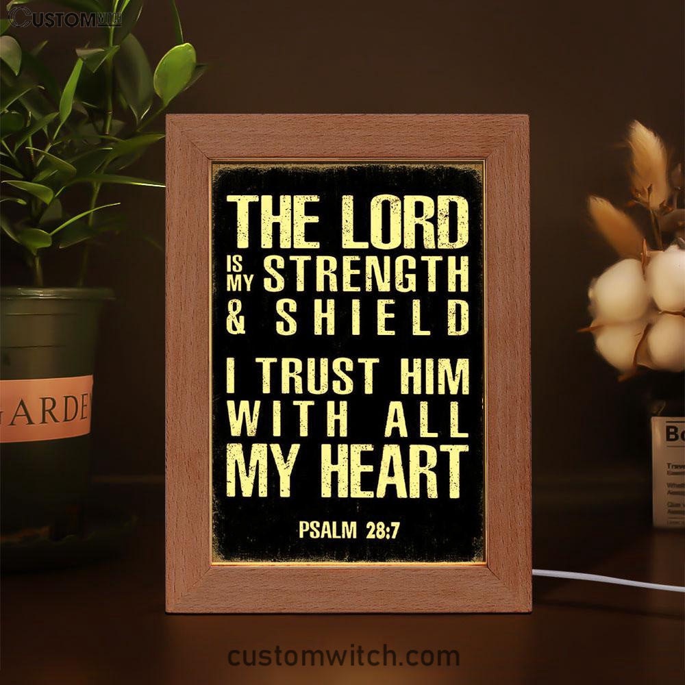 Psalm 28 7 - The Lord Is Strength & Shield Frame Lamp Art - I Trust Him With All My Heart - Christian Night Light Decor