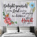 Psalm 374 Delight Your Self In The Lord Tapestry Print Bible Verse Wall Art - Christian Wall Decor