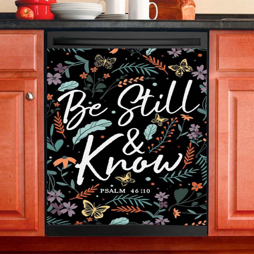 Psalm 4610 Be Still And Know Wildflowers Butterflies Christian Dishwasher Cover, Bible Verse Dishwasher Wrap, Scripture Kitchen Decoration