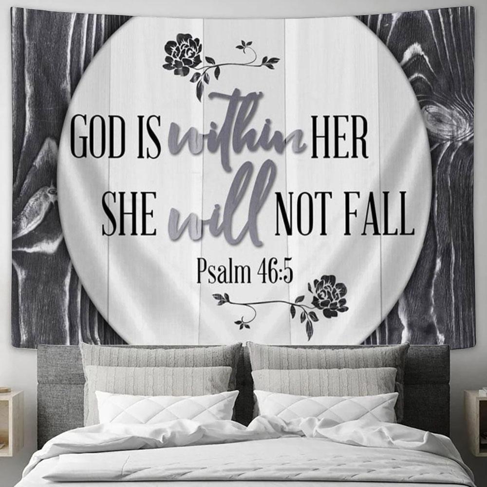 Psalm 465 God Is Within Her She Will Not Fall 1 Wall Art Tapestry - Christian Wall Art Decor - Scripture Tapestry Prints