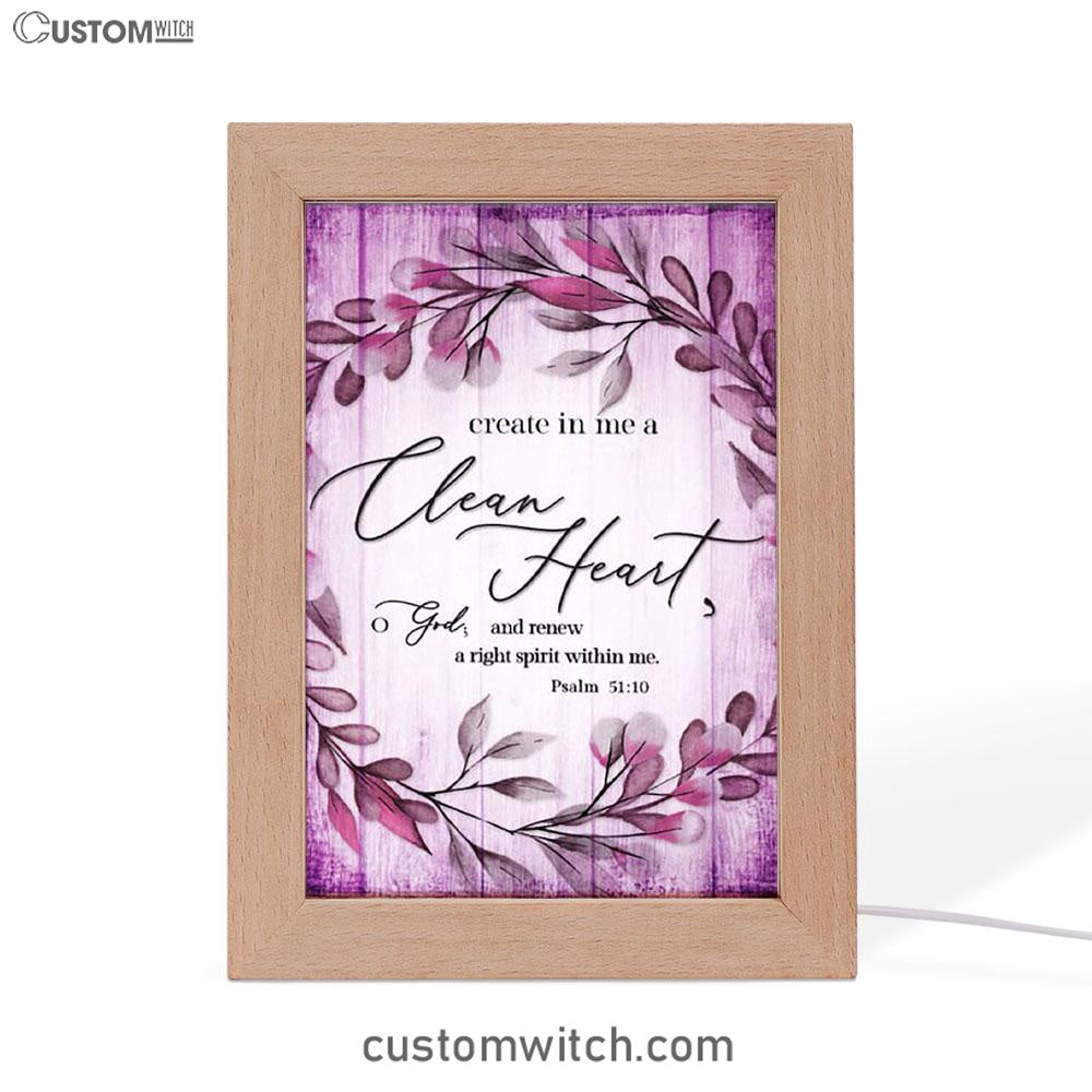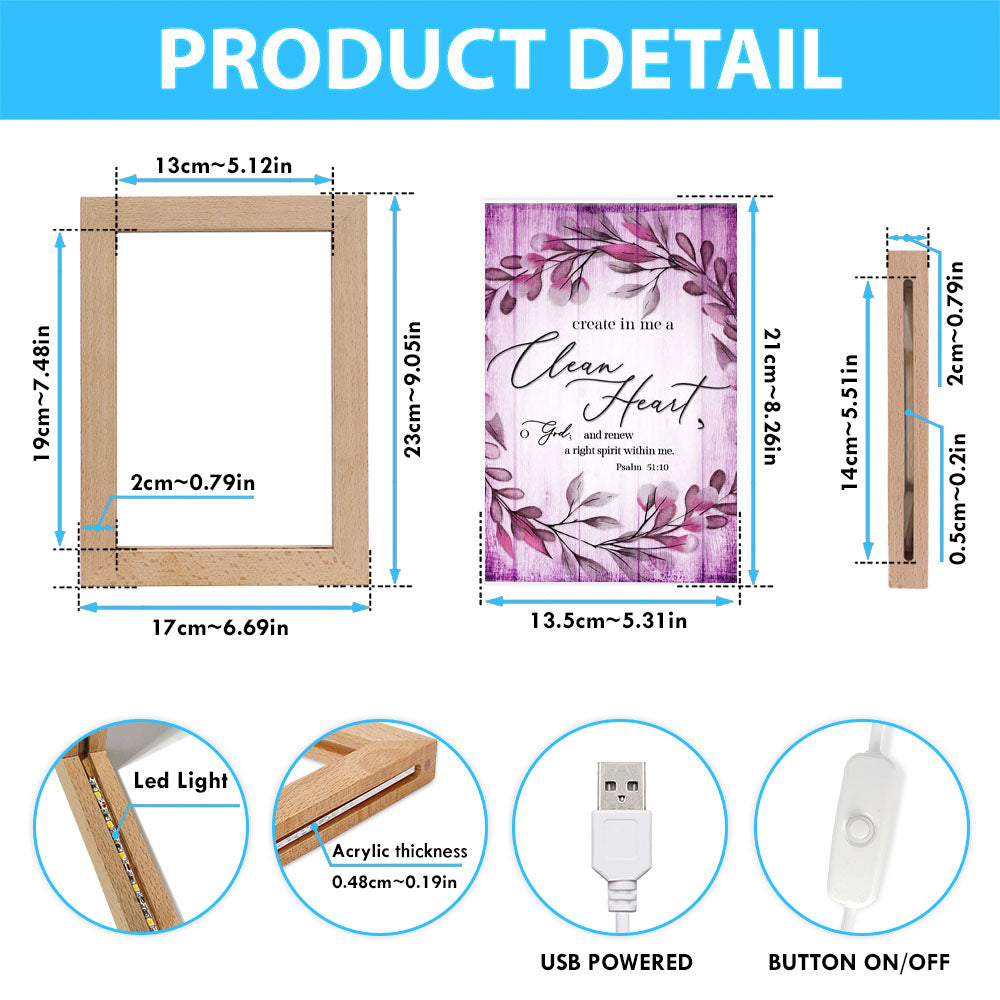 Psalm 5110 Create In Me A Clean Heart 2 Frame Lamp Art - Christian Night Light - Religious Decor