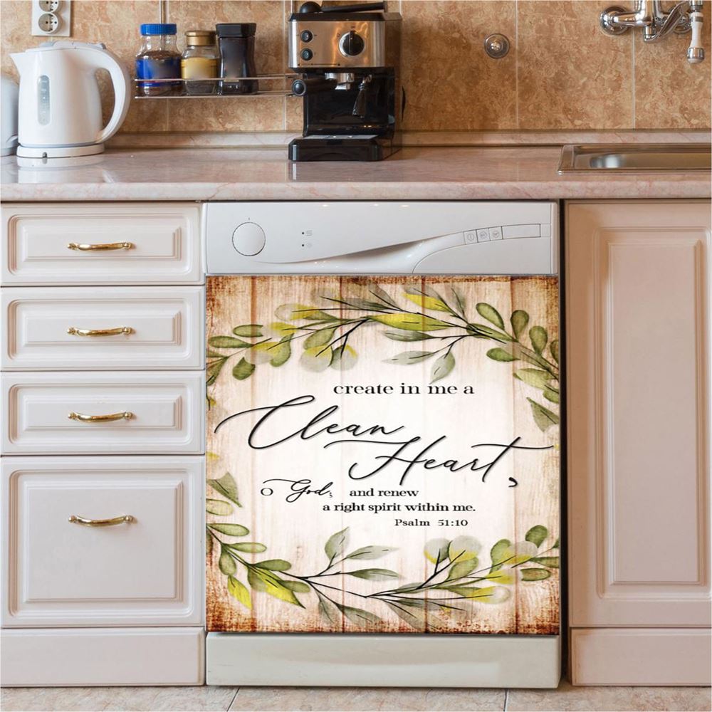 Psalm 5110 Create In Me A Clean Heart Dishwasher Cover, Christian Dishwasher Wrap, Religious Kitchen Decoration
