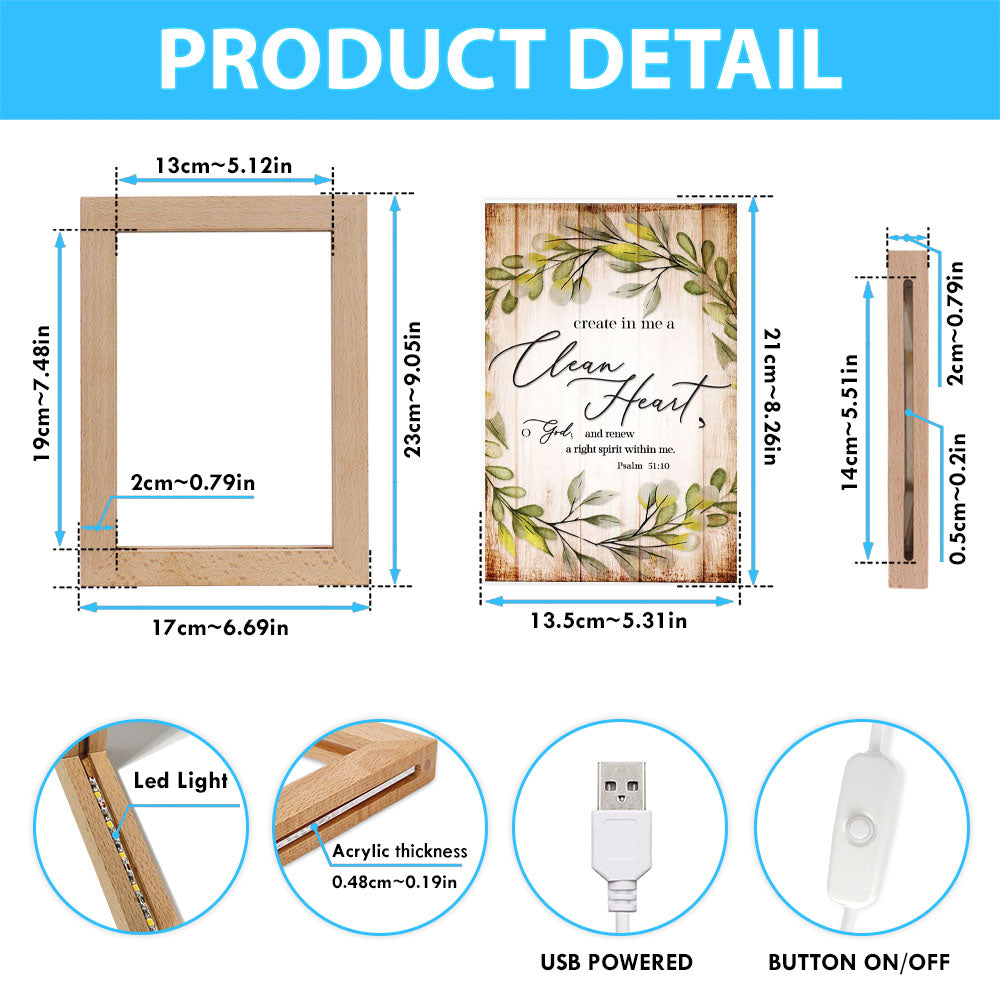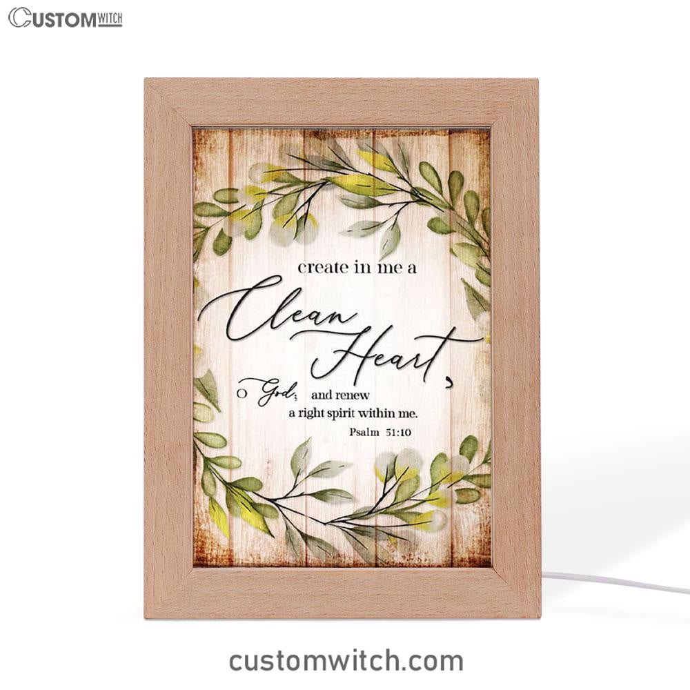 Psalm 5110 Create In Me A Clean Heart Frame Lamp Art - Christian Night Light - Religious Decor