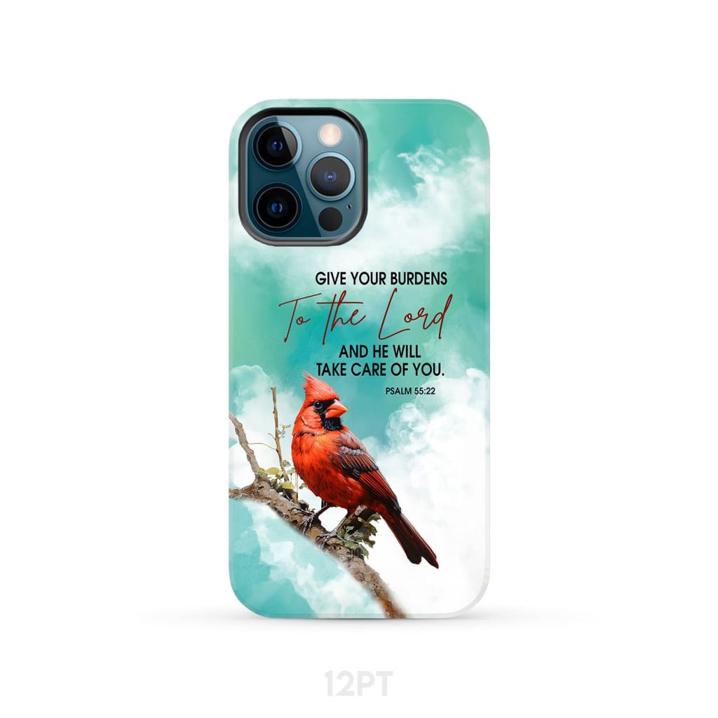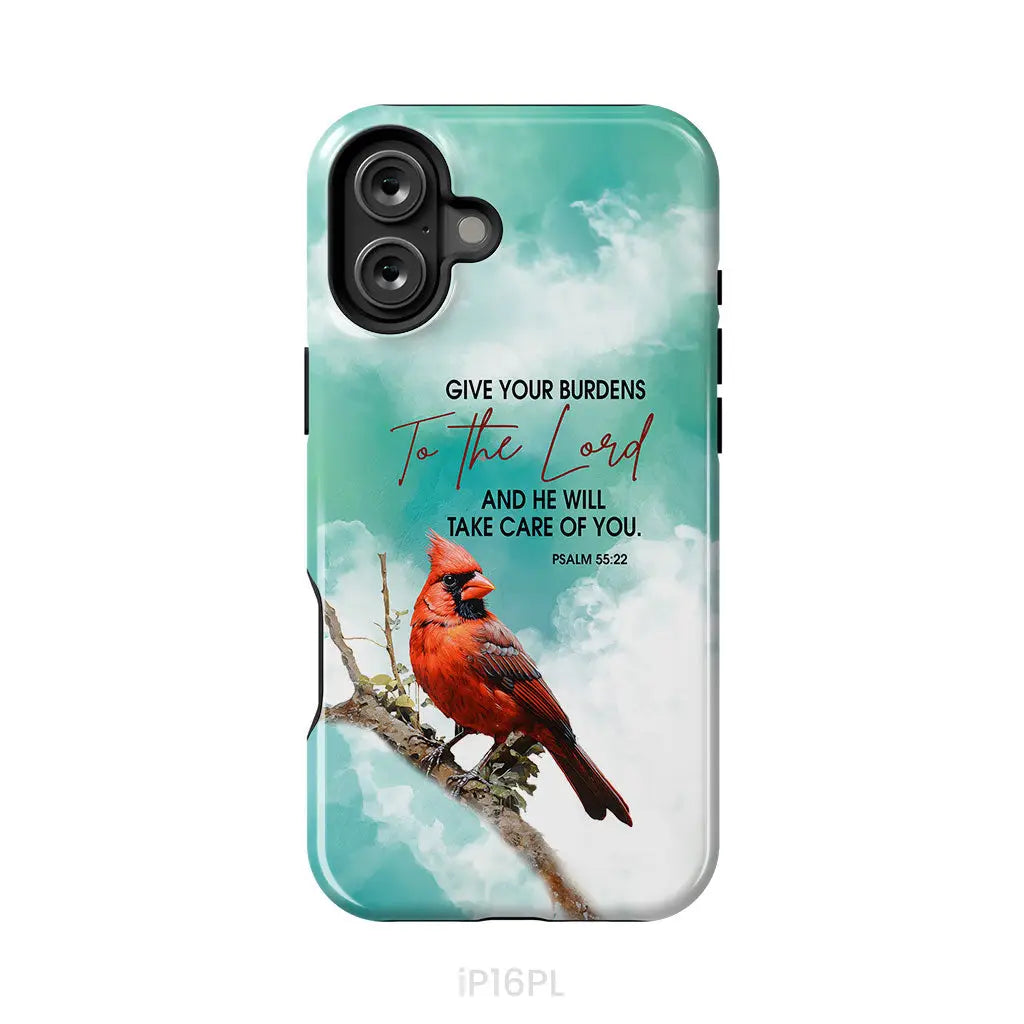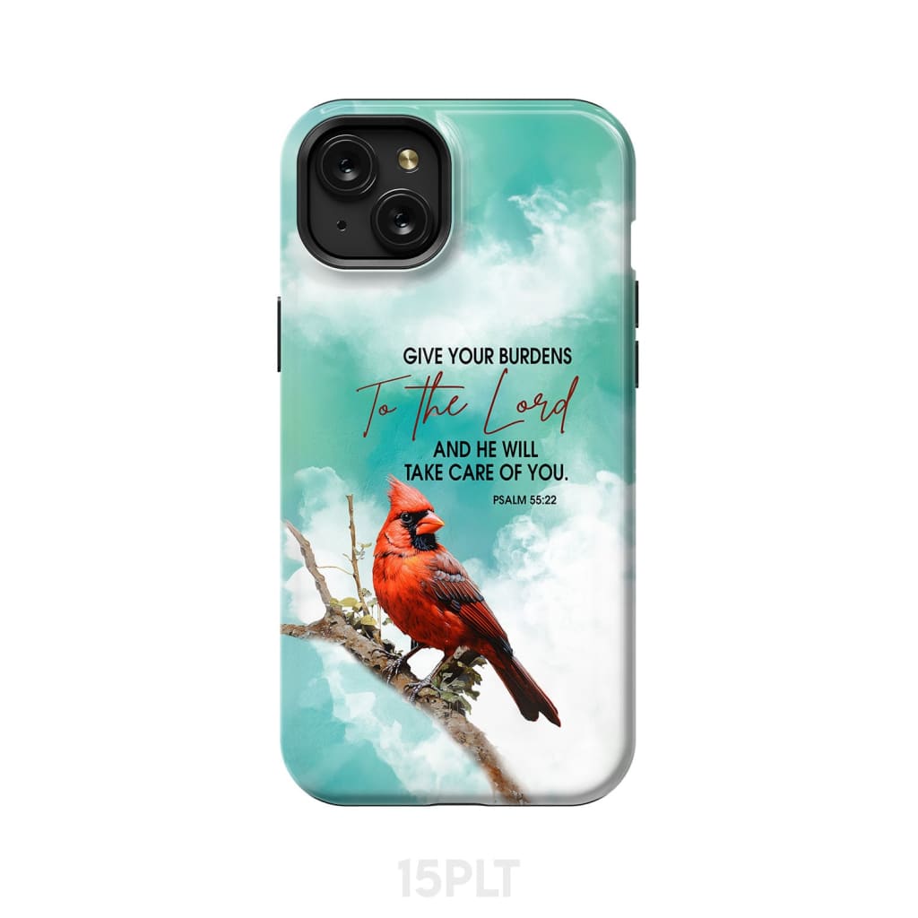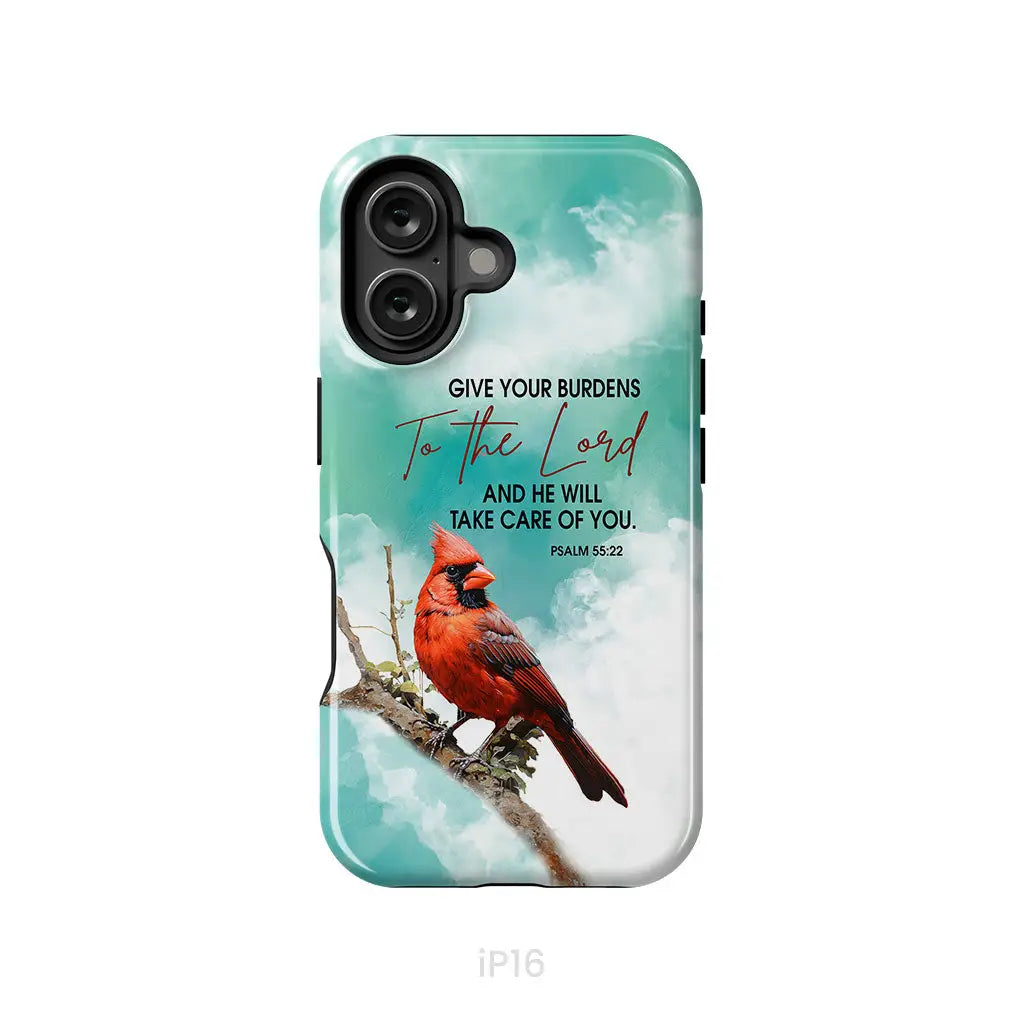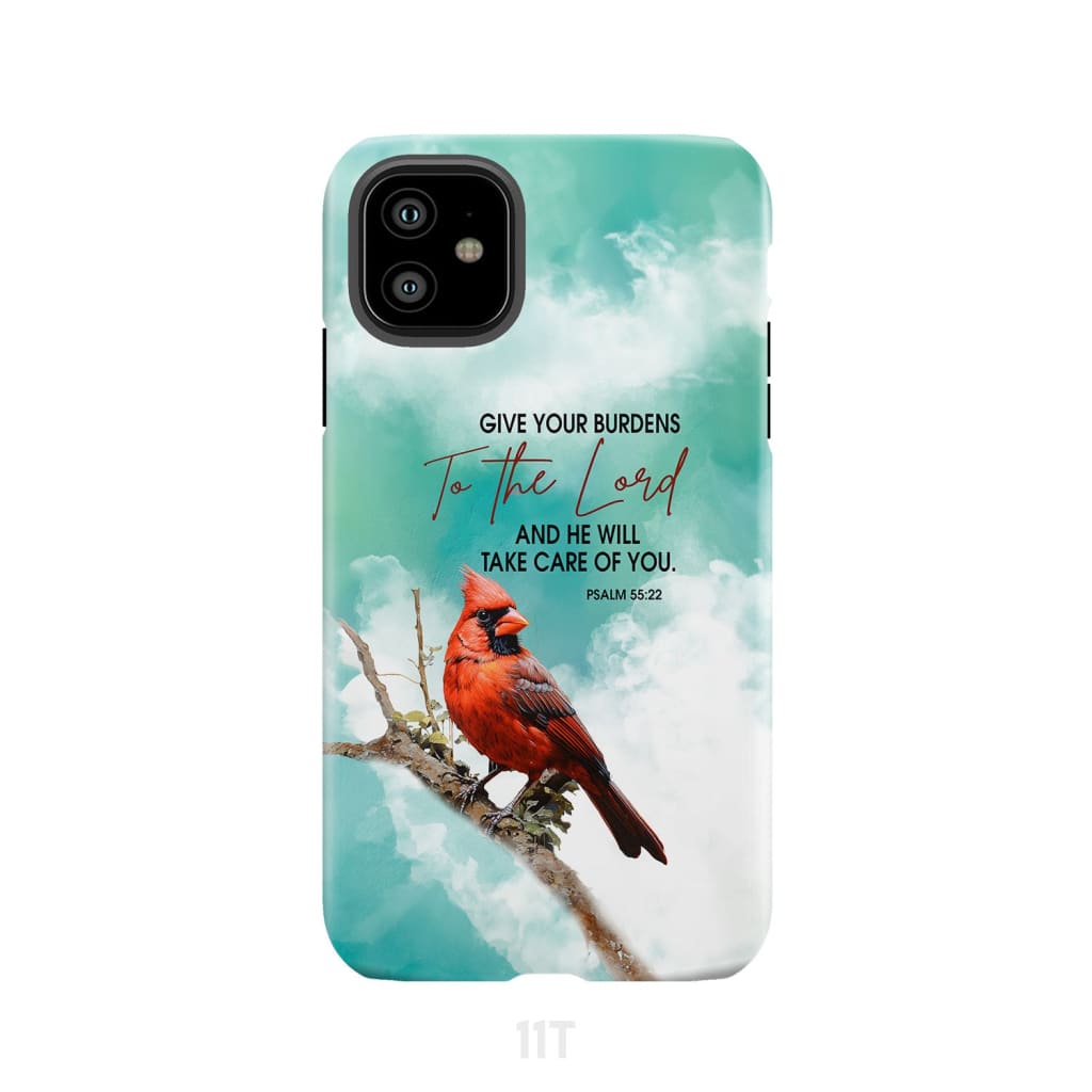 Give Your Burdens to the Lord Psalm 55:22, Cardinal Bird, Phone Case