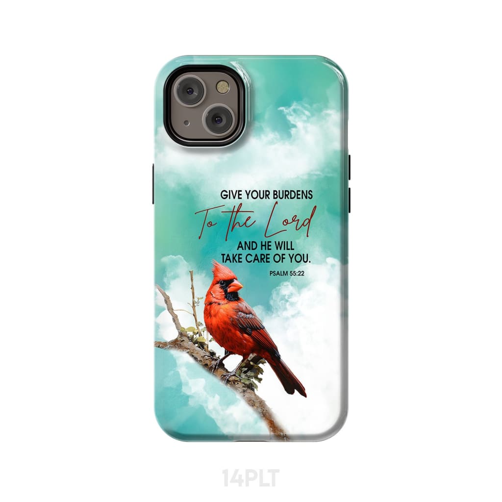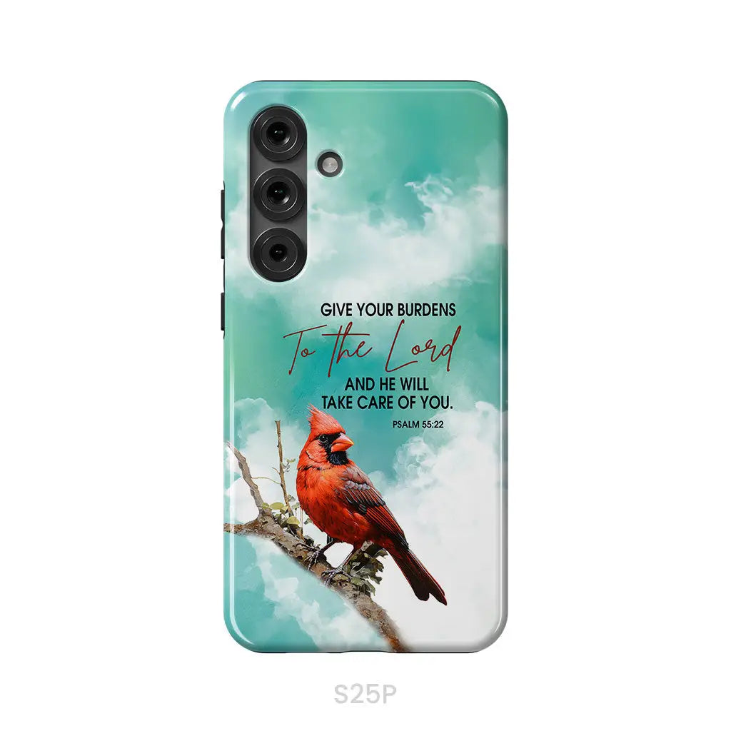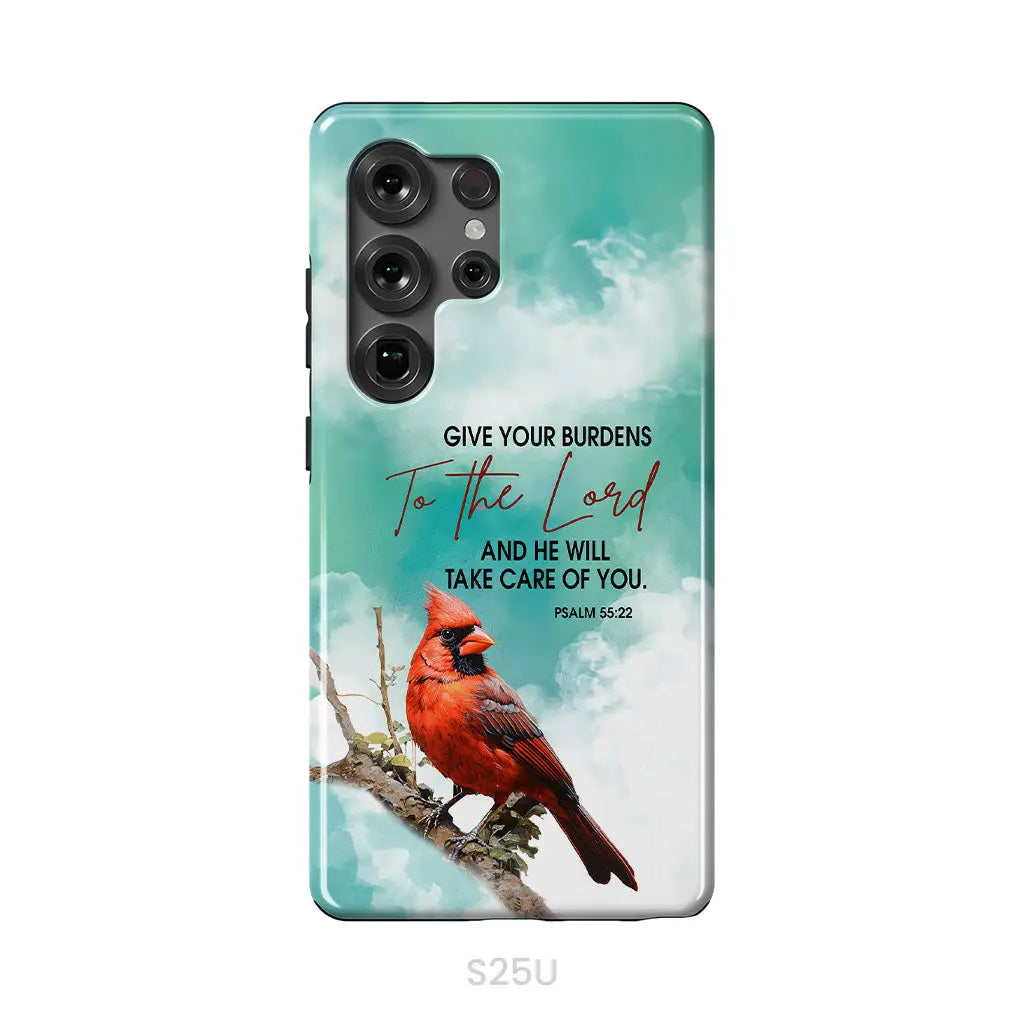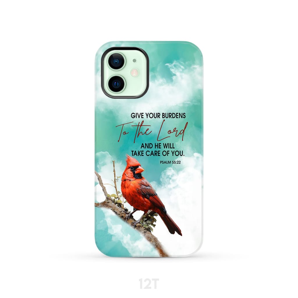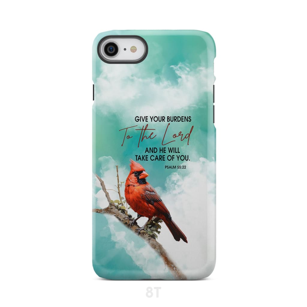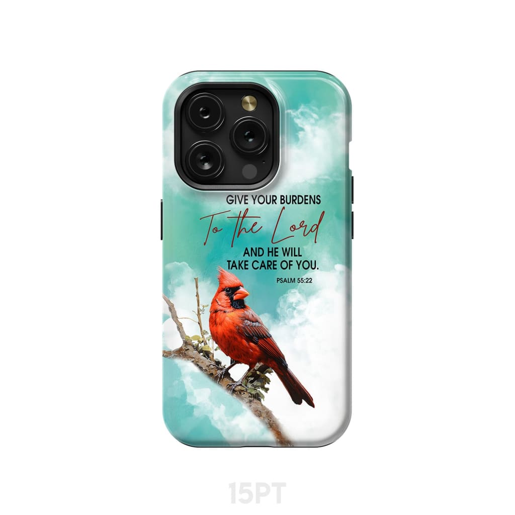 Give Your Burdens to the Lord Psalm 55:22, Cardinal Bird, Phone Case