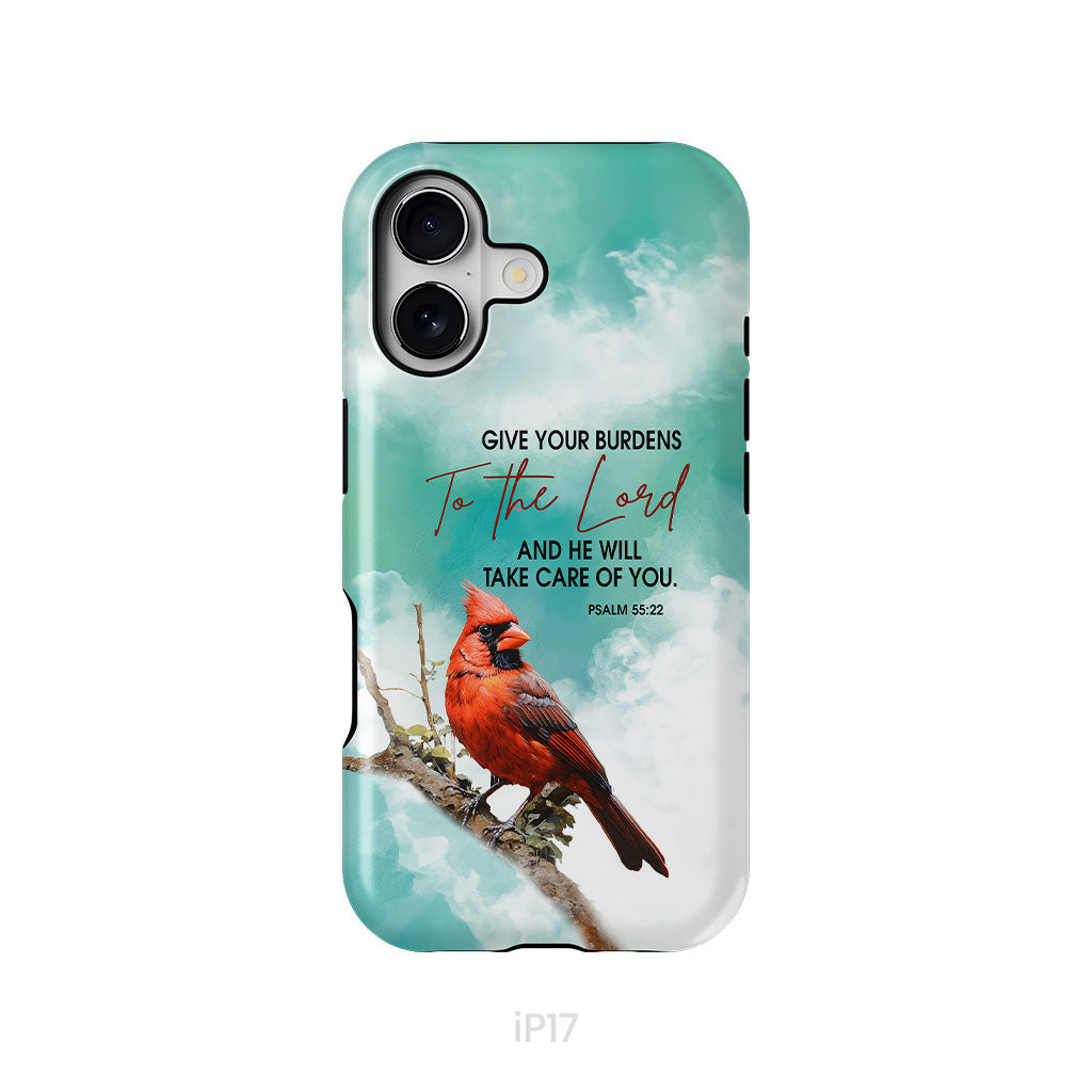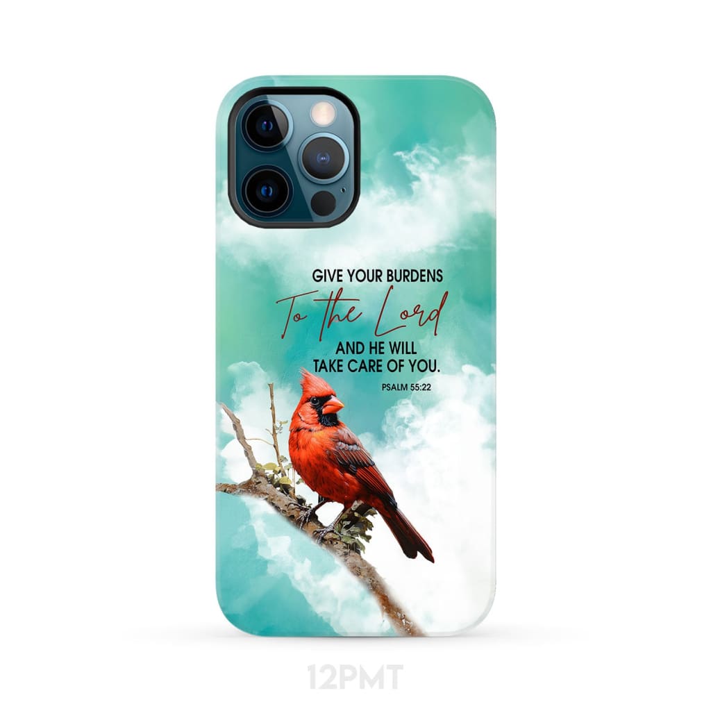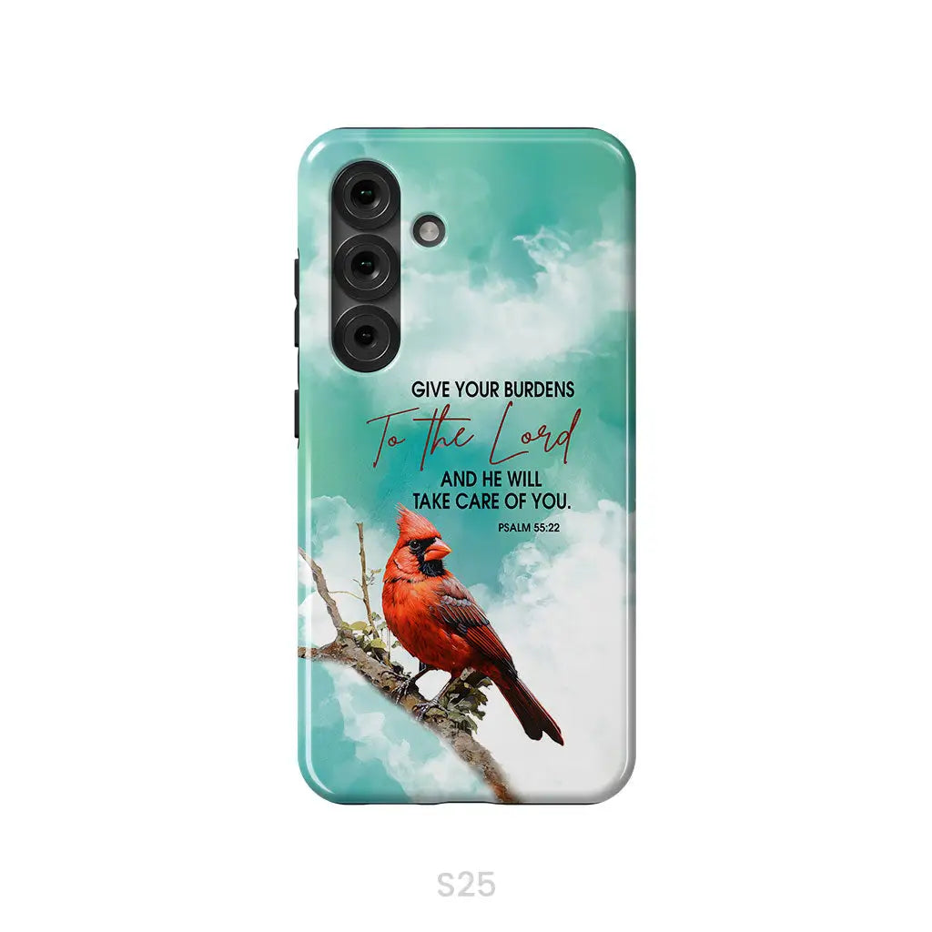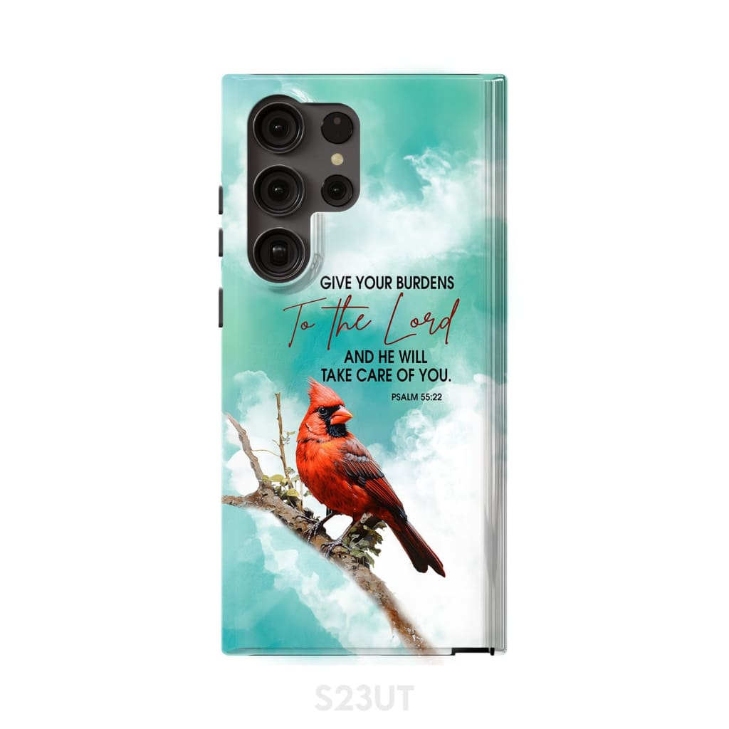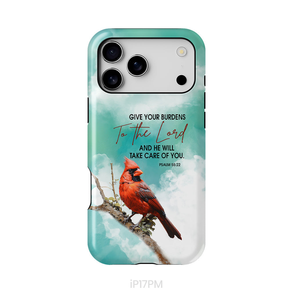 Give Your Burdens to the Lord Psalm 55:22, Cardinal Bird, Phone Case